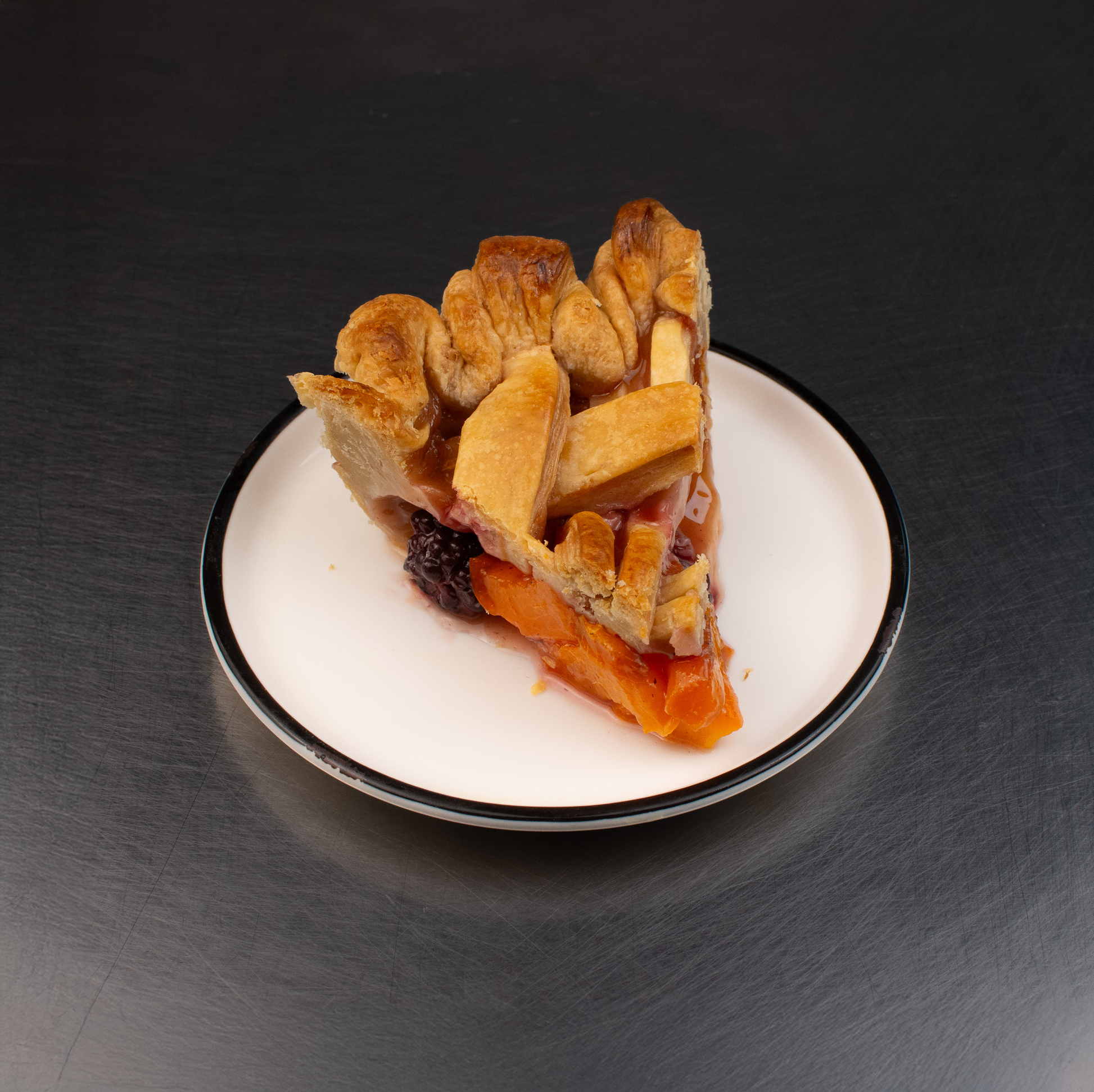 Empieza el verano con nuestra Apricot Blackberry Pie, una tarta de frutas de temporada que combina la dulzura suave del albaricoque con el toque ácido y jugoso de las moras. Todo sobre nuestra clásica masa dorada y crujiente, horneada a la perfección. Una combinación equilibrada, fresca y deliciosa.